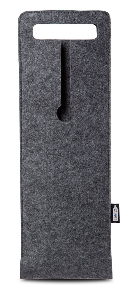 Denna väska för flaskor är både stilren och miljövänlig. Tillverkad av grått filttyg av återvunna PET-flaskor. Väskan har ett stort handtag och en mindre öppning för att enkelt kunna se väskans innehåll.
