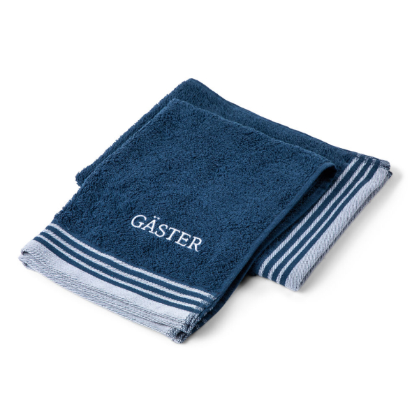 Den kommer i 2-pack med banderoll och har en fin brodyr ”Gäster” nere på kortsidan.