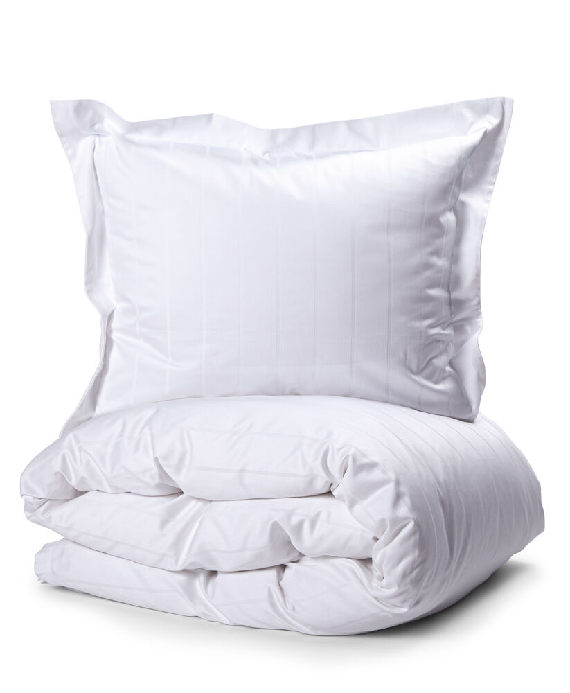 Exklusivt bäddset av bomullsatin, lite högre trådtäthet än vanliga satinbäddset tillsammans med en smal rand ton i ton gör det lyxigt och mjukt. Kommer även i king size som innehåller två örngott.