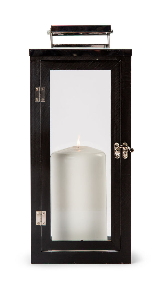 Svart robust trälykta från Orrefors Jernverk. Lyktan består av målat furuträ med detaljer av rostfritt stål och väggar av glas. Öppnas och stängs med en dekorativ hake på framsidan. Lyktan blir en snygg detalj i inredningen och skapar dessutom ett mysigt sken. Lyktan kan användas utomhus under tak vid varmare väder.