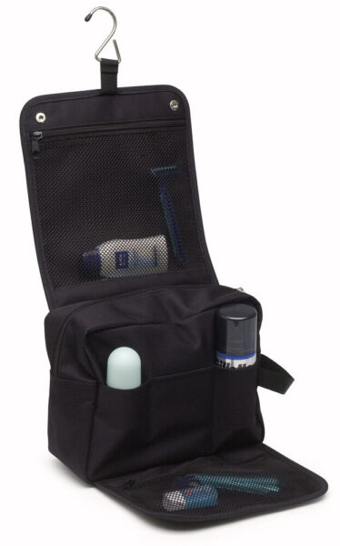 Praktisk resenecessär med många fack och upphängningskrok.