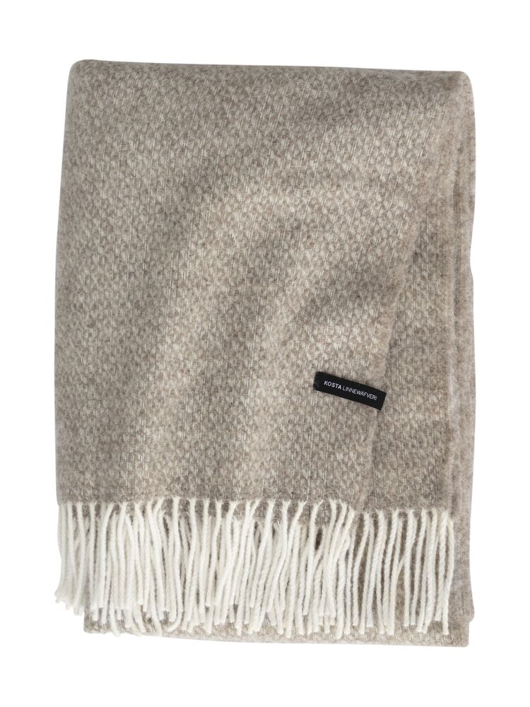 En rejäl ullpläd som ger både värme och karaktär. Med en balanserad färgskala i sand och grått passar den in i alla rum – från sovrum till stuga. Mjuk nog att svepa in sig i, men med struktur nog att ligga vackert över soffan.