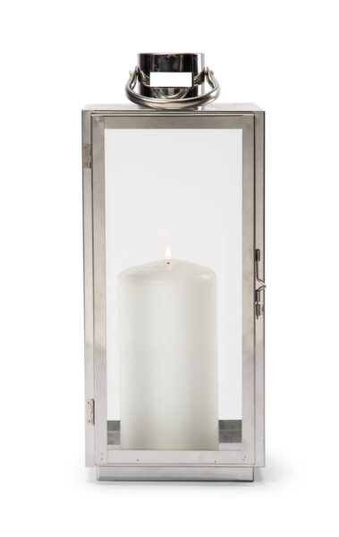 Stilren lykta från Orrefors Jernverk tillverkad av rostfritt stål med väggar av glas. Öppnas och stängs med en liten hake på ena sidan vilket gör att den står emot vind bra. Ställ lyktan på utsidan så genererar det ett mysigt sken på långt håll eller använd inomhus för att skapa en hemtrevlig känsla.