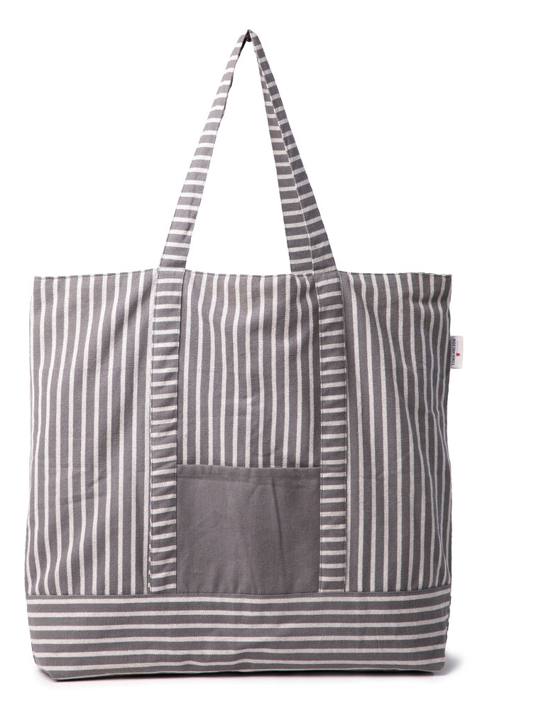 En rymlig strandväska i kraftig bomull där du får plats med allt du behöver för en dag på stranden. Fickan på sidan ger plats till mindre lösa föremål och stadiga handtag klarar våta handdukar och strandfynd på vägen tillbaka.