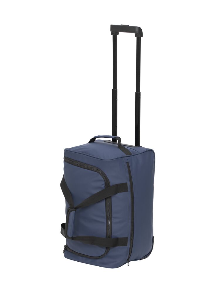 En snygg och praktisk väska för dig som vill resa organiserat. Med rymligt fack, flera smarta fickor, utdragbart handtag och smidiga hjul tar du dig fram med lätthet. Väskan i återvunnet PU-material är också utrustad med axelband.