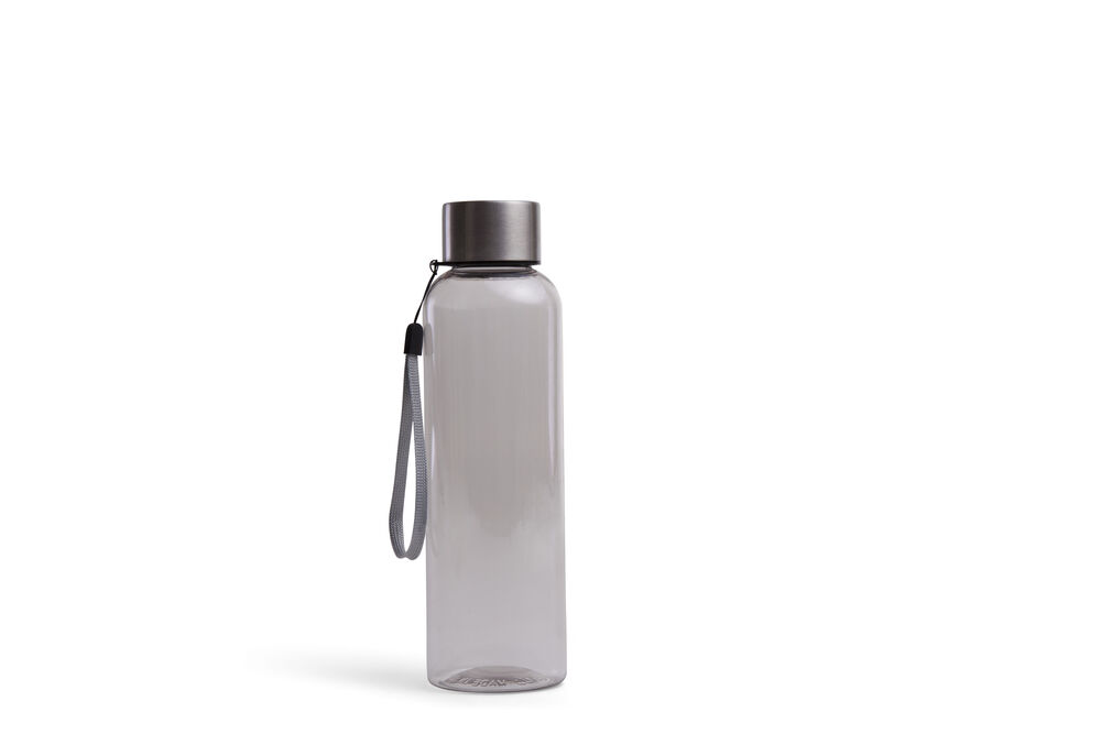 Snygg flaska i BPA-fri TRITAN-plast, lock i rostfritt stål. Tygöglan i locket gör det möjligt att hänga flaskan på en krok eller runt handleden. Ytan är skön att greppa och gör att eventuella loggor syns mycket bra.